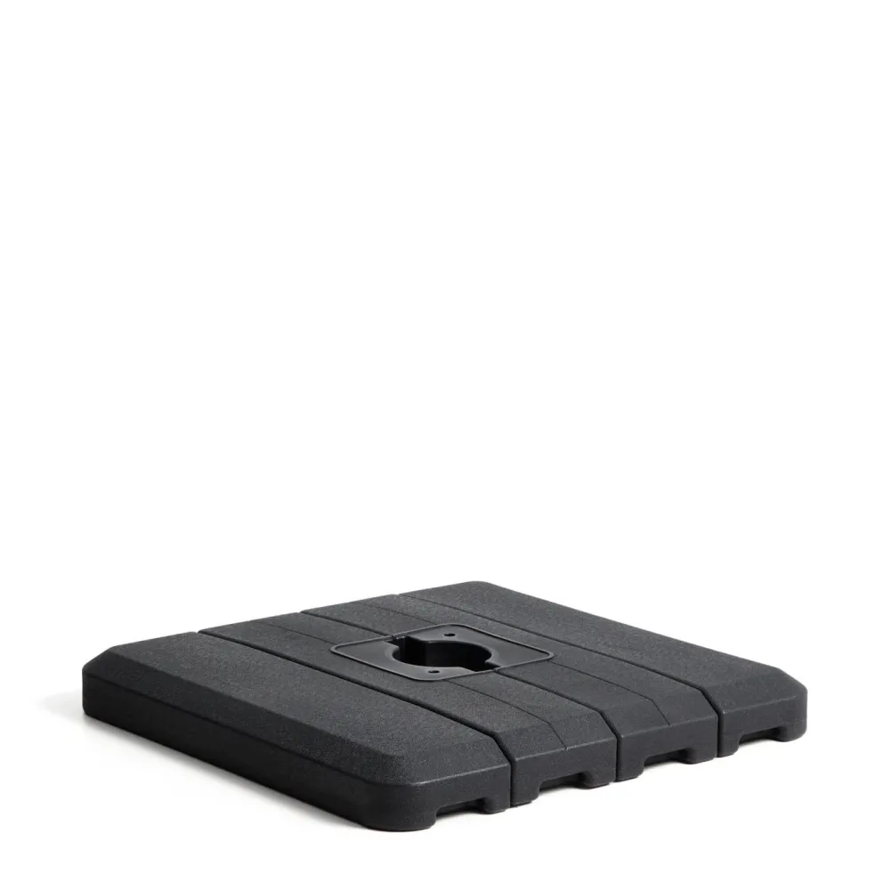 Stabiliteit voor excentrische parasols De Alfaz parasolvoet is ontworpen voor excentrische parasols en zorgt voor een goede stabiliteit buitenshuis. Hij kan worden gevuld met water of zand om het nodige gewicht te bieden. Praktisch ontwerp Hij beschikt over een dop om hem gemakkelijk te vullen en te legen. Duurzaam kunststof voor buitengebruik Hij is gemaakt van duurzaam kunststof, een materiaal dat geschikt is voor buitengebruik en bestand is tegen blootstelling aan zon en weersomstandigheden. Praktisch en functioneel gebruik Een praktische en functionele oplossing om met meer veiligheid en gemoedsrust van de parasol te genieten.