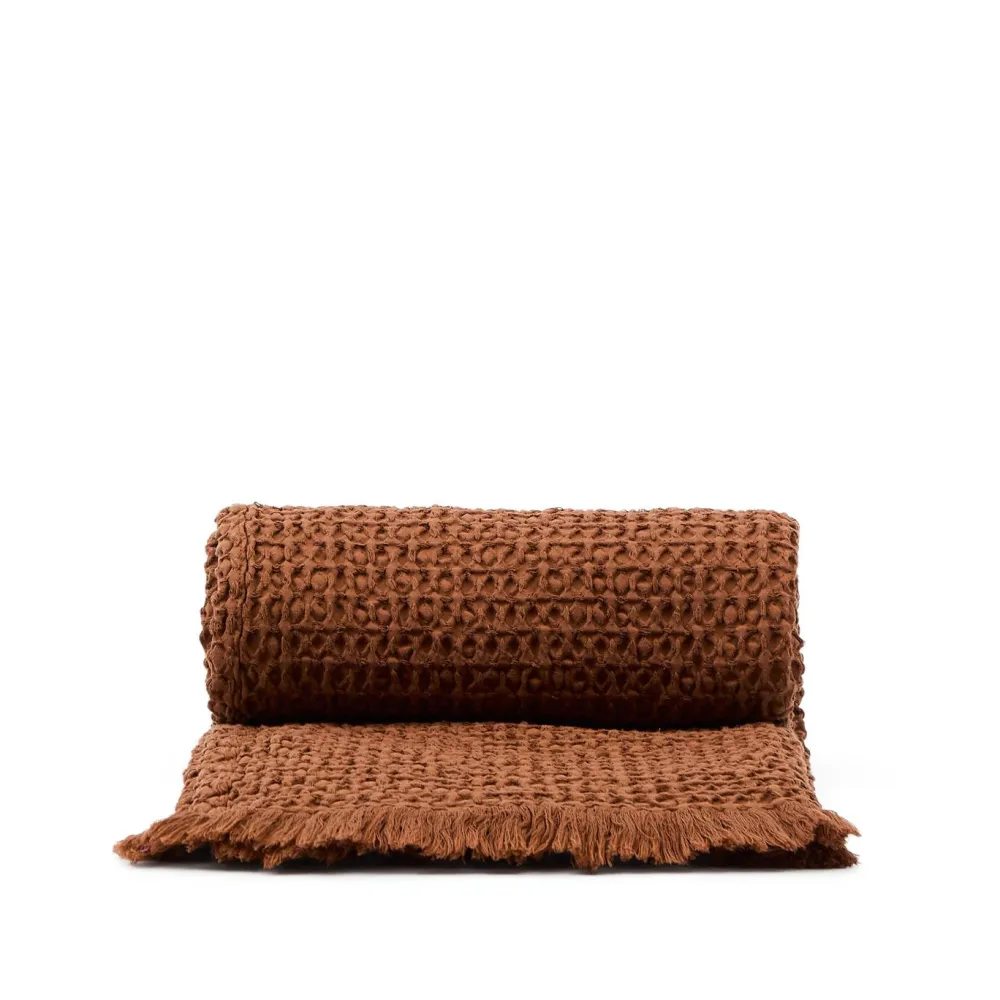 Deze deken is gemaakt van 100% katoen, wat zorgt voor een aangename textuur en een omhullend gevoel van zachtheid. Het ontwerp met reliëf voegt volume en een opvallend visueel detail toe, terwijl de franjes het product afmaken met een casual, verfijnde uitstraling. Gemaakt in Portugal, een land dat bekend staat om zijn traditie en knowhow in de productie van kwaliteitstextiel.