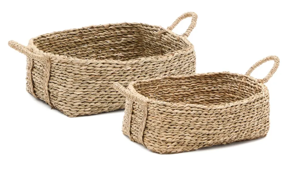 - Set met 2 manden gemaakt van handgevlochten zeegras.