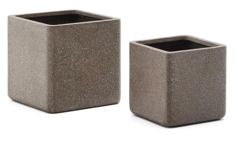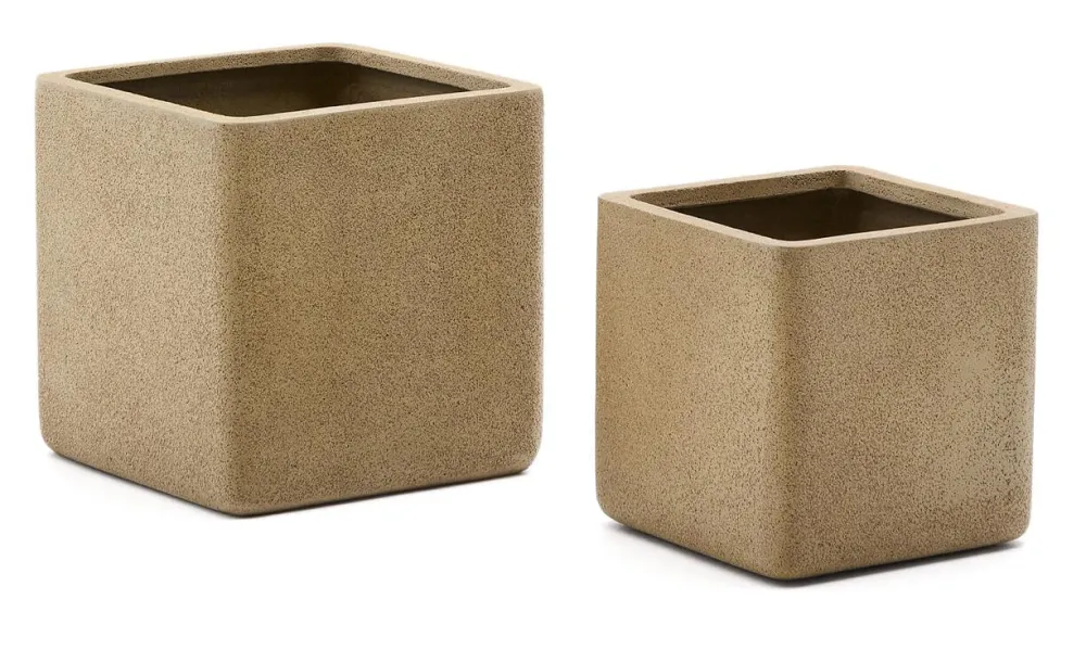 Kave Home Potten Voor Buiten|Potten & Manden|Lage Plantenpot Minoa Polystone, Set van 2 stuks