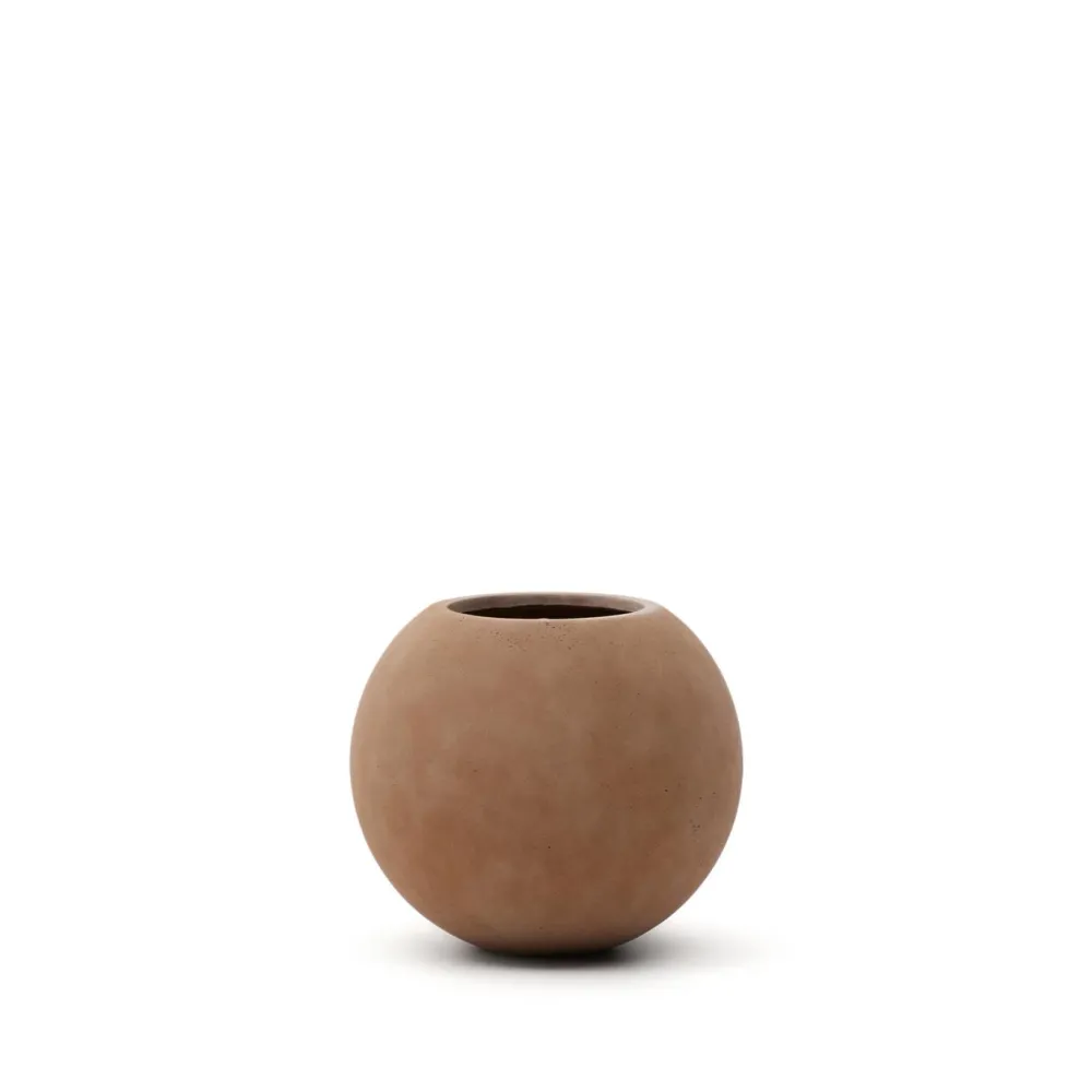 Met zijn bolvorm en terracotta tint brengt de Solna bloempot warmte en visueel evenwicht in elke ruimte. Hij is gemaakt van polycement en onderscheidt zich door zijn weerstand en veelzijdigheid, ideaal voor zowel binnen als buiten. Perfect om planten in te zetten of als decoratief element dat een organisch tintje geeft aan de omgeving.