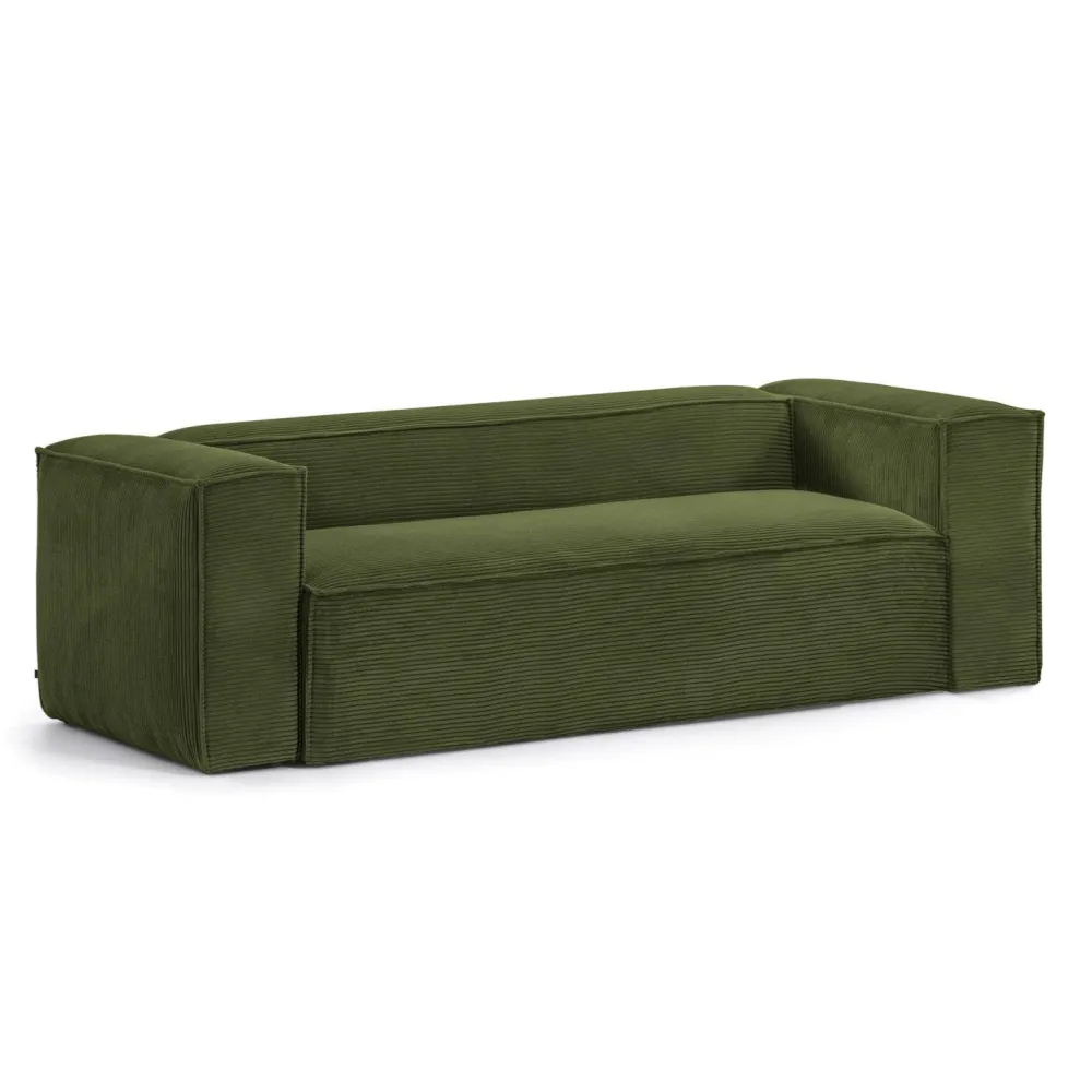 Deze iconische collectie wordt gedefinieerd door de brede proporties en gestructureerde lijnen. Daardoor ontstaat een object dat in elke omgeving stabiliteit en sereniteit uitstraalt. De poten hebben een onzichtbaar effect en geven de bank een gevoel van visuele lichtheid. Dit benadrukt zijn aanwezigheid en wordt de hedendaagse esthetiek van je woonkamer versterkt met een uniek en tijdloos ontwerp. De Blok-bank combineert elegantie en functionaliteit zodat hij op natuurlijke wijze in moderne ruimtes past. De bekleding is gemaakt van dik ribfluweel, dat zacht aanvoelt en zeer goed bestand is tegen slijtage en licht. Het biedt een omhullende textuur en is uitzonderlijk duurzaam. Het is perfect voor dagelijks gebruik en de schoonheid blijft intact in de loop van de tijd. De middelzachte zitting combineert een basis van 30 kg/m³ zacht schuim met een laag hardschuim van 20 kg/m³ en een toplaag van 20 kg/m³ zacht schuim. Dit zorgt voor de perfecte balans tussen comfort en ondersteuning, ideaal voor zowel alledaagse ontspanning als het ontvangen van gasten. De rugleuning biedt extra comfort dankzij de kern van 20 kg/m³ hard schuim bedekt met 20 kg/m³ zacht schuim. Hij nodigt je uit om achterover te leunen en je te ontspannen. Voor een nog comfortabelere ervaring raden wij u aan om het zitcomfort aan te vullen met de kussens uit de collectie. Deze zijn apart verkrijgbaar. De interne structuur van vurenhout is FSC Mix Credit gecertificeerd, gemaakt van een combinatie van materialen uit FSC-gecertificeerde bossen en FSC-gecontroleerd hout. Bovendien garandeert lokale productie in Europa hoge kwaliteitsnormen en vermindert het de impact op het milieu. De leverancier van de stoffen is OEKO-TEX® STANDARD 100 gecertificeerd voor een ecologisch veilige en milieuverantwoorde productie. Blok is de must-have die opvalt door zijn ontwerp, comfort en vermogen om elke kamer te transformeren.
