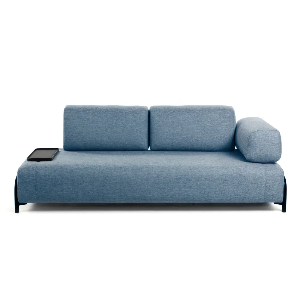 De bank Compo is een ontwerp van Òscar Doll, één van de designers van het Kave Home-team. Een tijdloos en veelzijdig stuk dat past in allerlei ruimtes en bij diverse interieurstijlen. De structuur van dennenhout is bedekt met schuim en bekleed met blauwe stof. Deze bank wordt de eyecatcher van je woonkamer.