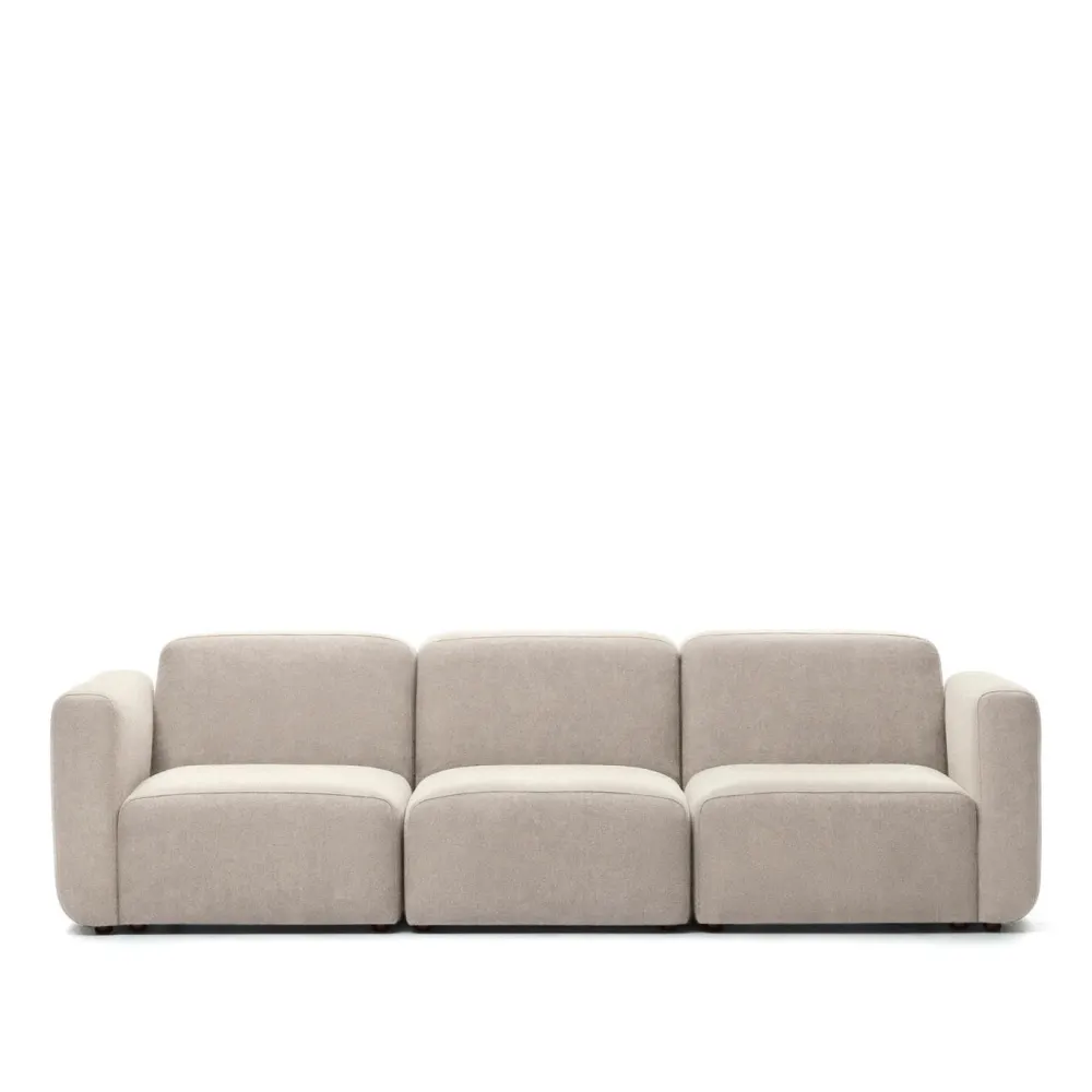 - Modulaire 3-zitsbank bekleed met beige structuurstof.