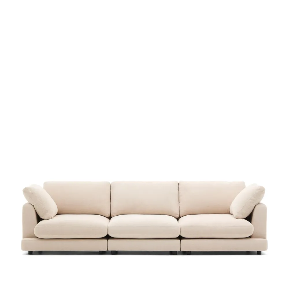 - 4-zitsbank bekleed met beige chenille met hoogwaardige, fijne structuur en antibacteriële en vlekbestendige behandeling.