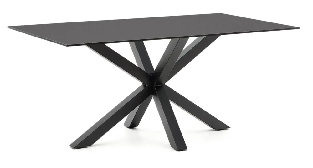 - Structuur met kruislings ontworpen poten gemaakt van geschilderd staal met een zwarte afwerking.