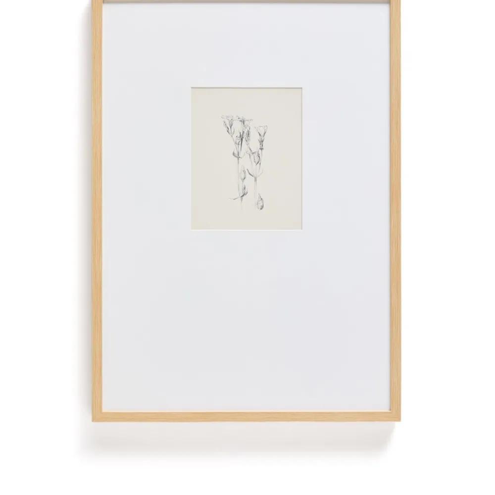 Dit schilderij valt op door de gedrukte illustratie in botanische stijl, uitgevoerd in potlood met een patroon dat doet denken aan traditionele graveertechnieken. Elke streek weerspiegelt de precisie en delicatesse van klassieke botanische tekeningen en brengt karakter en verfijning in de kamer. De illustratie is gevat in een breed passe-partout dat hem omlijst, voor elegantie zorgt en de afbeelding laat ademen, voor een evenwichtig en tijdloos visueel effect. Een veelzijdig werk voor wie op zoek is naar decoratieve kunst met een subtiele aanwezigheid.
