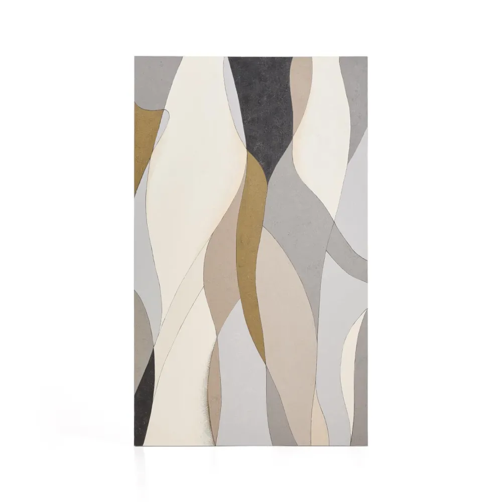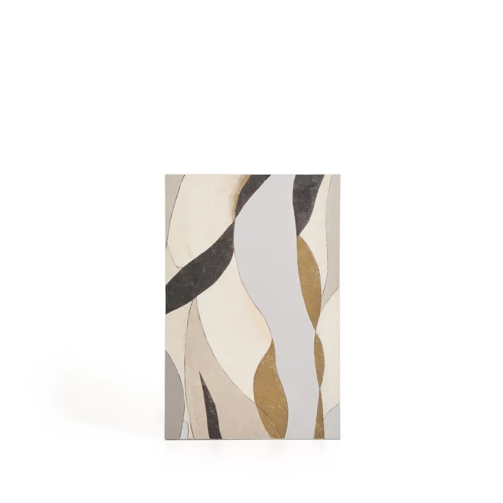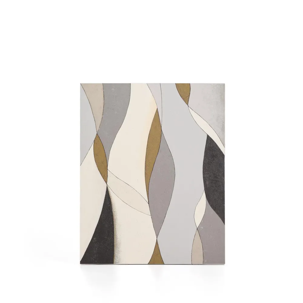 Dit abstracte canvas in grijs- en mosterdgele tinten brengt beweging en verfijning in elke omgeving. De zachte lijnen en organische vormen verstrengelen zich tot een evenwichtige compositie die rust en elegantie uitstraalt in de kamer. De grijs- en mosterdgele tinten worden gecombineerd met verschillende intensiteiten, wat visuele diepte creëert en integratie in moderne woonkamers, slaapkamers of kantoren vergemakkelijkt.