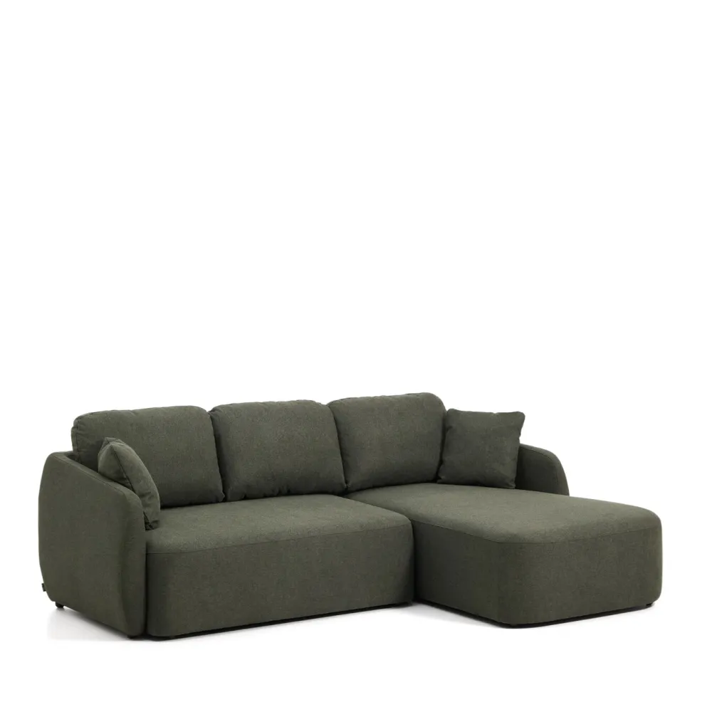 De slaapbank Laira valt op door zijn bekleding van hoogwaardig chenille met een grove structuur, die zeer zacht aanvoelt en slijtvast is. Dankzij het Y-open openingssysteem met gesynchroniseerd openingsmechanisme kan de bank snel en eenvoudig worden veranderd in een comfortabel bed van 150 x 230 cm op het breedste punt. Eenmaal geopend kan hij ook worden gebruikt als een doorlopende chaise longue. Het schuim met een dichtheid van 28 kg/m3 geeft je een gemiddeld harde zitervaring met een balans van comfort en ondersteuning. De kussens van de rugleuning hebben afneembare hoezen en zijn gevuld met vezels en gevlokt schuim, die zorgen voor omhullend comfort. Interne structuur van massief grenenhout en multiplex. Het massieve grenenhout is FSC™ 100% Chain of Custody-gecertificeerd met een garantie voor een verantwoord bosbeheermodel en het multiplex is FSC Mix Credit-gecertificeerd, gemaakt van een mix van materialen uit FSC-gecertificeerde bossen en FSC-gecontroleerd hout.