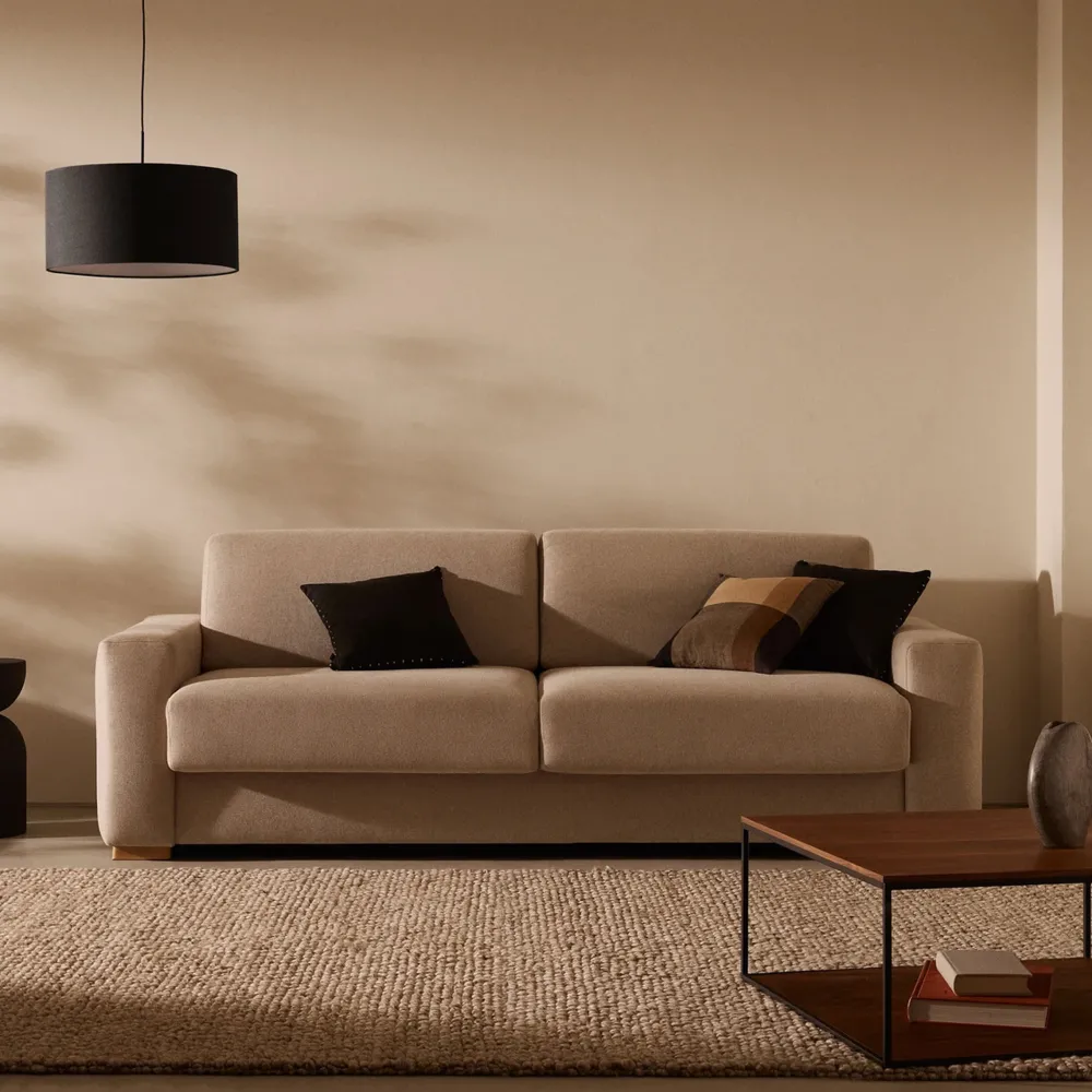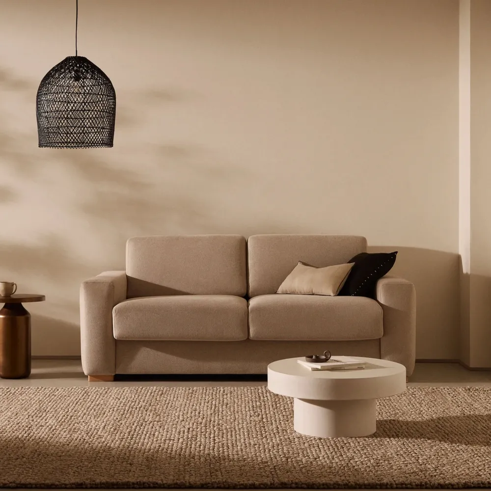 Deze slaapbank valt op door zijn bekleding in gestructureerde stof met hoge slijtvastheid en zijn massief beukenhouten poten. De slaapbank hoezen van de zitting en rugleuningen kunnen eenvoudig en gemakkelijk worden gereinigd. De zitting is van gemiddelde hardheid dankzij een schuimkern met een dichtheid van 28 kg/m³ die gecombineerd is met een zeer veerkrachtige toplaag met een dichtheid van 28 kg/m³, waardoor de bank de perfecte balans biedt tussen stevigheid en comfort. De rugleuning heeft een superzachte kern van 20 kg/m³, ontworpen voor maximaal comfort. Door het Italiaanse openingsmechanisme met synchroon kanteling kan de bank snel en gemakkelijk in een bed worden veranderd. Het beschikt een visco-elastisch matras van 140 x 190 cm, 16 cm dik met een gemiddeld harde rubberen kern met een dichtheid van 26 kg/m3. Een matras dat is ontworpen om een uiterst comfortabele rust te bieden. De interne structuur is gemaakt van grenenhout, waardoor het meubel stevig is en lang meegaat. De stof beschikt over een OEKO-TEX® STANDARD 100-certificering voor ecologisch veilige en milieuverantwoorde productie, wat kwaliteit en veiligheid garandeert bij contact met de huid. Bovendien is het hout FSC Mix Credit-gecertificeerd, gemaakt van een mix van materialen uit FSC-gecertificeerde bossen en FSC-gecontroleerd hout. Geproduceerd in Europa, waardoor minder CO₂ wordt uitgestoten en het milieu minder wordt belast. Een veelzijdige oplossing voor elk huis, die is ontworpen om het dagelijks leven gemakkelijker te maken en zich aan te passen aan elk moment.