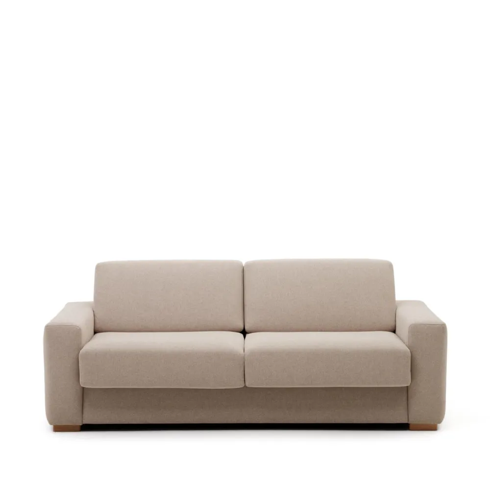 - Slaapbank met massief beukenhouten poten en bekleed met een gestructureerde beige stof met hoge slijtvastheid die machinewasbaar is. Zitting en rugleuning met afneembare bekleding.