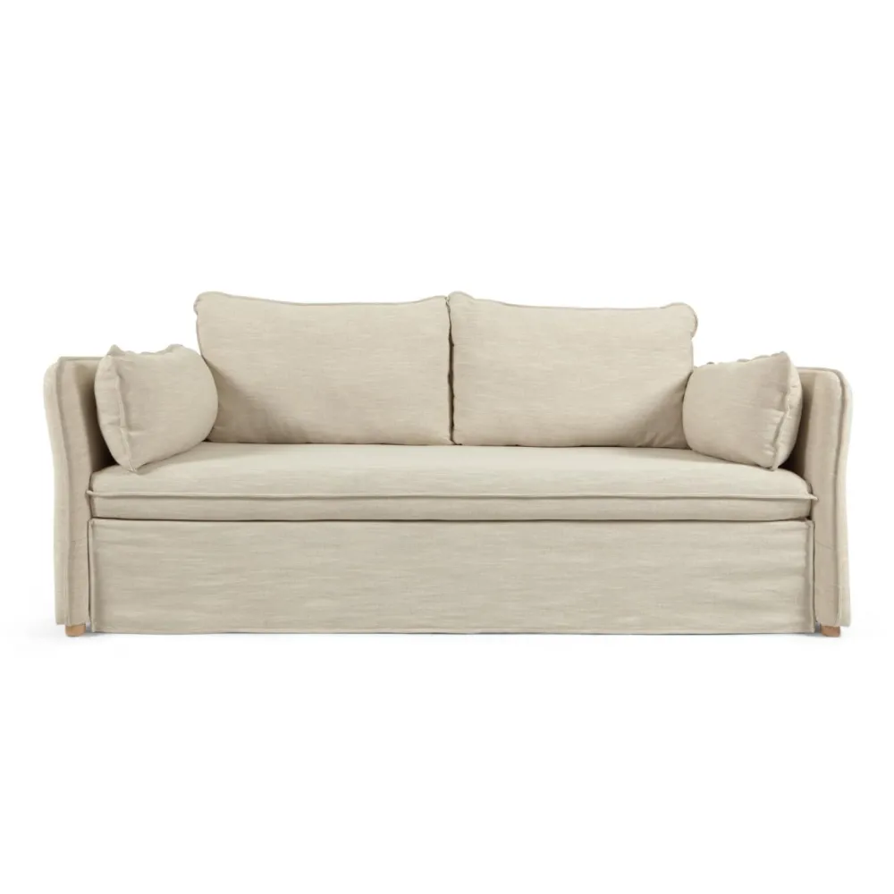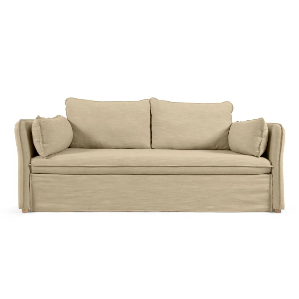 Comfortabel dankzij het linnen dat in de bekleding is verwerkt. Praktisch, want het verandert in een paar seconden in een bed. En onweerstaanbaar dankzij het exclusieve ontwerp van het Kave Home-team. Een uitschuifbare slaapbank waar aan alles is gedacht.