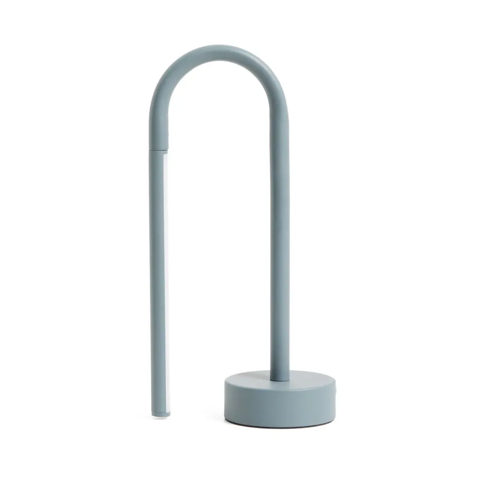 - Draagbare tafellamp van aluminium met grijs gelakte afwerking.