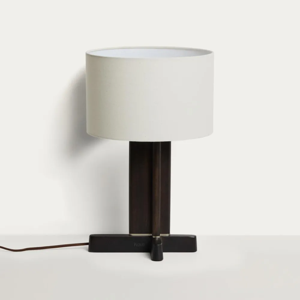 De Niani lamp valt op door het doordachte ontwerp en de balans van texturen en materialen. De rubberen houten voet voegt visuele warmte toe, terwijl de ivoorkleurige katoenen kap het licht filtert en een zachte en omhullende sfeer creëert. De details van geborsteld staal voegen een elegante nuance toe en het donkerbruine stoffen snoer zorgt voor een discrete aanwezigheid in elke ruimte. Niani is compatibel met E27-lampen tot 40 W (niet inbegrepen) en biedt een omhullende verlichting die ideaal is voor rust- of leesruimtes.