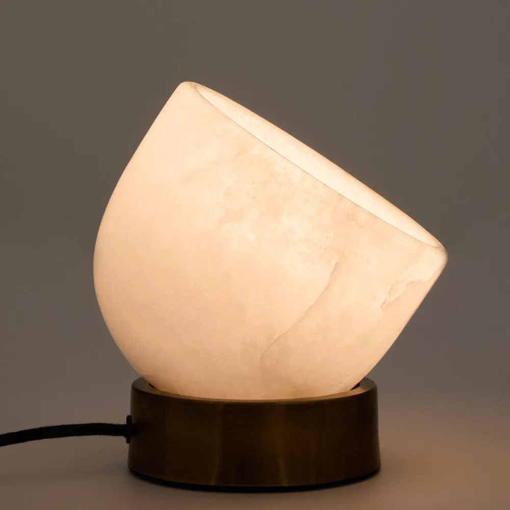 - Kap gemaakt van albast, een materiaal van natuurlijke oorsprong dat met het licht onregelmatige nuances en schaduwen creëert die warmte aan de kamer toevoegen.