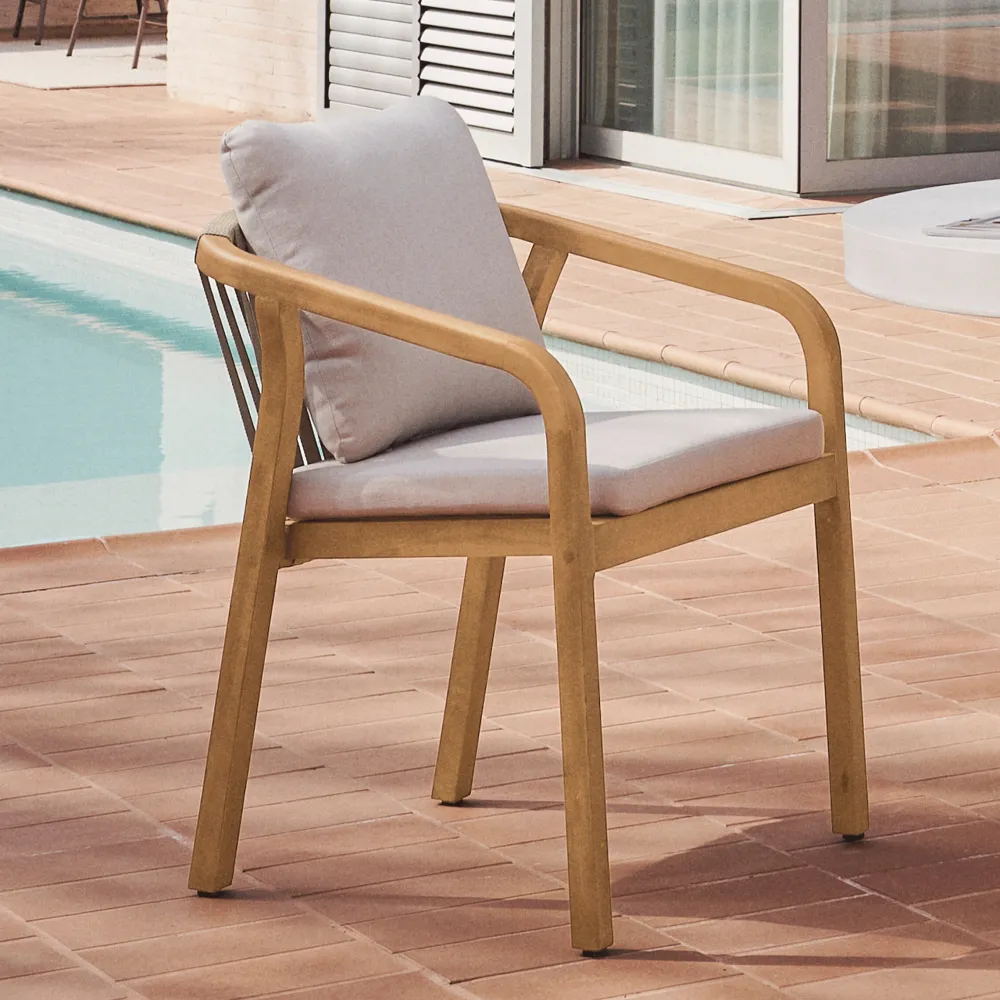 Geniet van maaltijden binnen en buiten met de Malaret stoelen. Gemaakt van acaciahout en handgevlochten touw, zijn ze perfect voor het creëren van uw eethoek buiten.