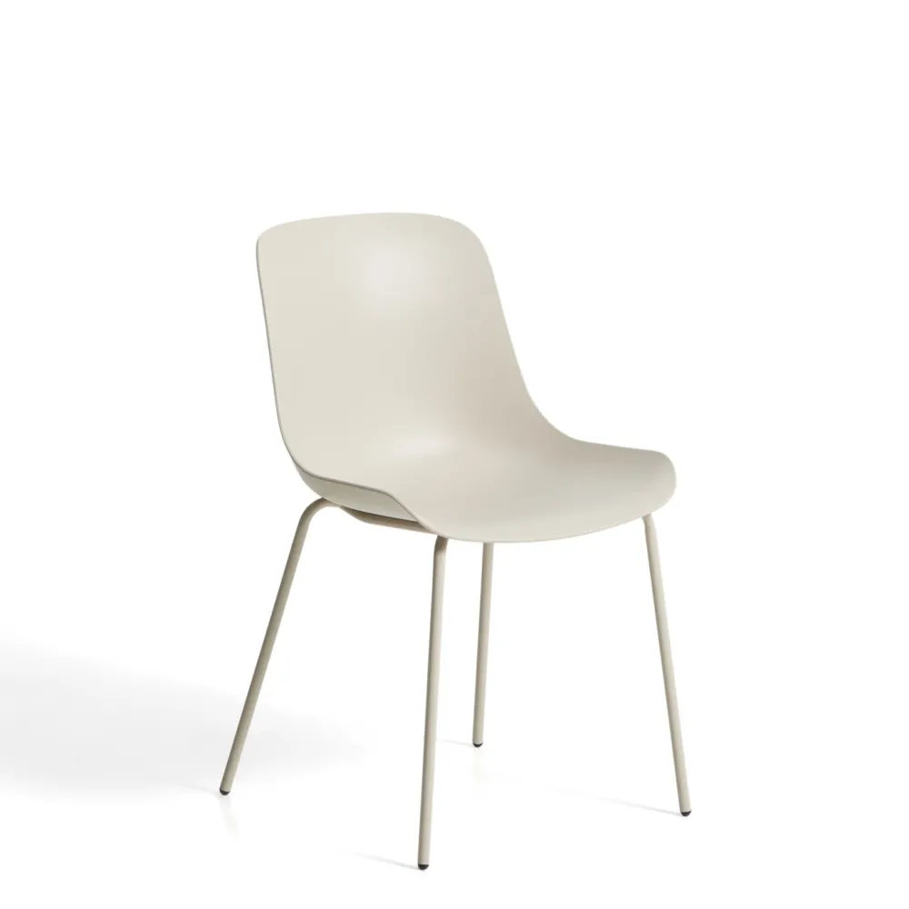 Altea is een veelzijdige stoel die comfort en duurzaamheid combineert. De zitting is gemaakt van 50% gerecycled plastic van een Global Recycled Standard-gecertificeerde leverancier, wat minder gebruik van grondstoffen en nieuw materiaal garandeert. Bovendien is hij behandeld om UV-stralen te weerstaan, waardoor het zowel binnen als buiten kan worden gebruikt zonder verlies van kleur of kenmerken. De stalen poten zijn gecoat met UV-bescherming en elektroforese, wat de structuur versterkt en beschermt tegen vocht en dagelijks gebruik. Hij is licht, stevig en gemakkelijk te integreren is in verschillende omgevingen, ontworpen voor dagelijks gebruik.