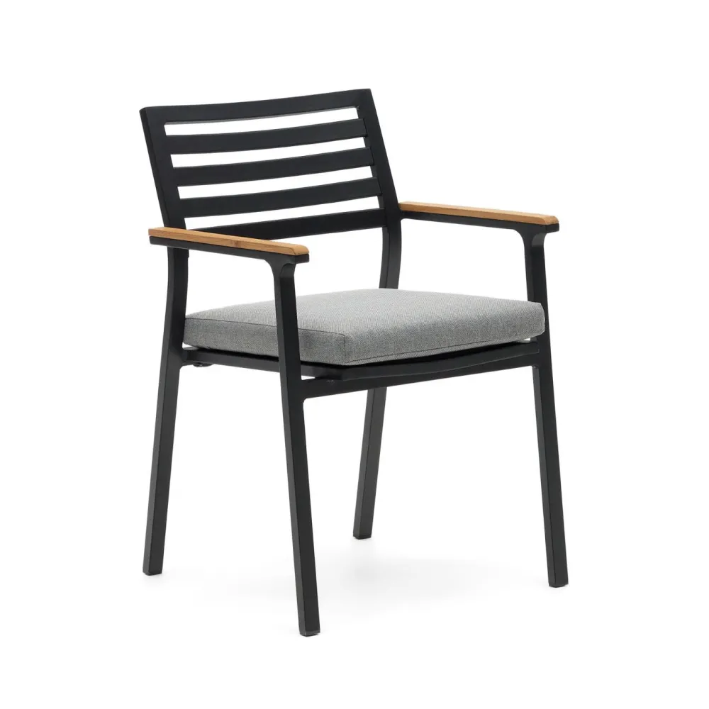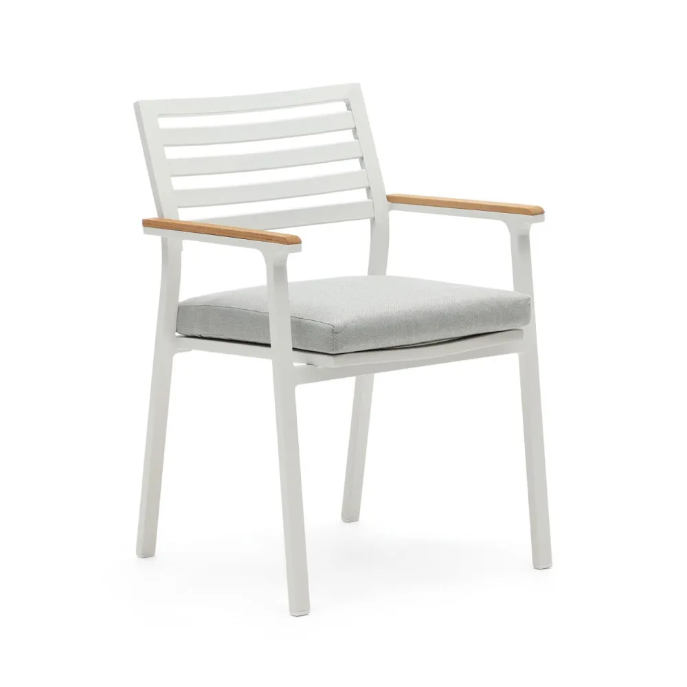 - Aluminium stoel met massief teakhouten armleuningen.