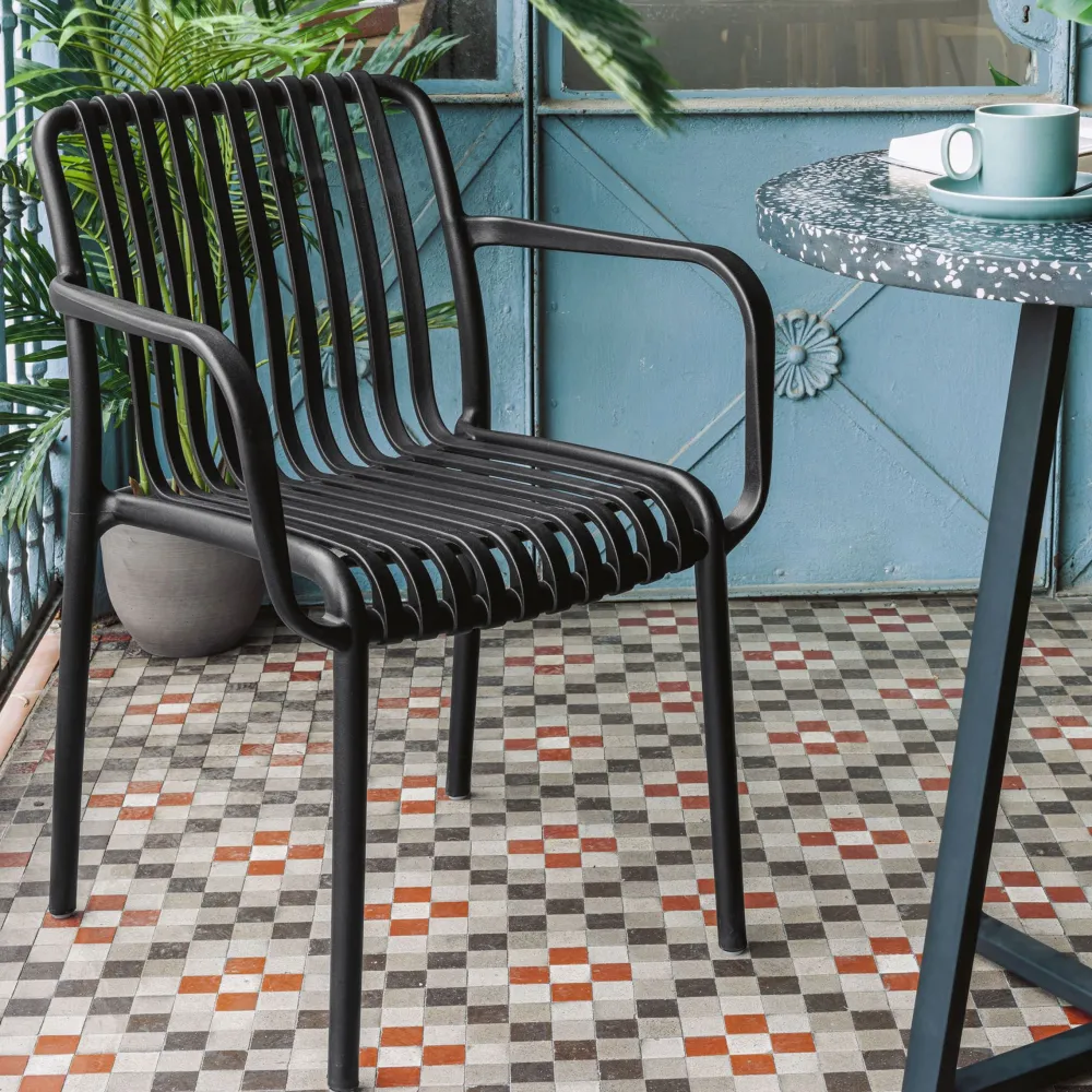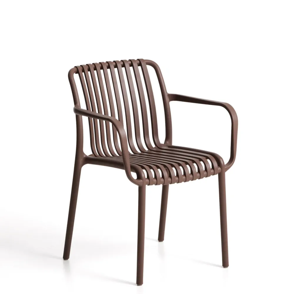 Geniet van het buitenleven dankzij het ergonomische ontwerp van de Isabellini stoel. Het is gemaakt van 100% recyclebaar plastic en is geschikt voor gebruik binnen en buitenshuis, omdat het UV-bestendig en super gemakkelijk te onderhouden is. Ideaal voor het hele jaar door.