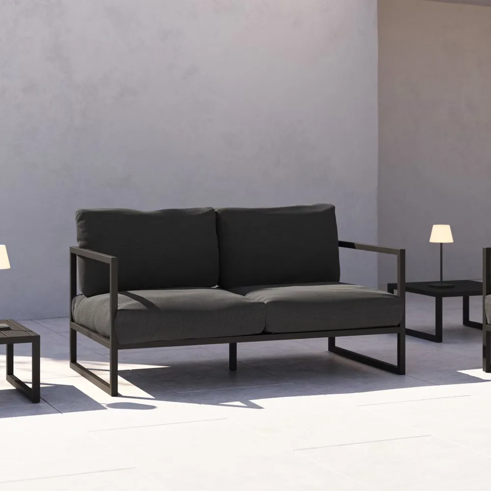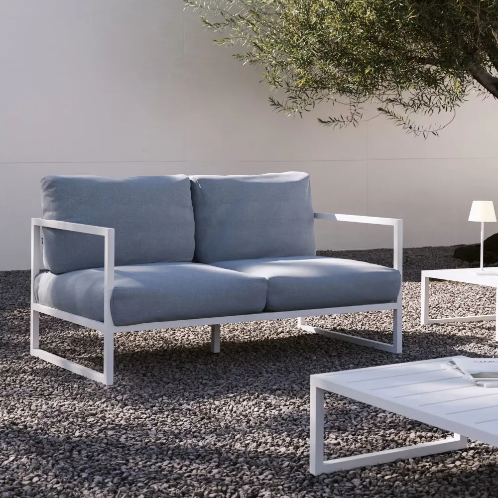 Kave Home creëert de Comova collectie met banken, fauteuils en tafels. Een 100% outdoor design, gemaakt in Europa van de beste materialen, met een aluminium frame en kussens in Crevin stof.