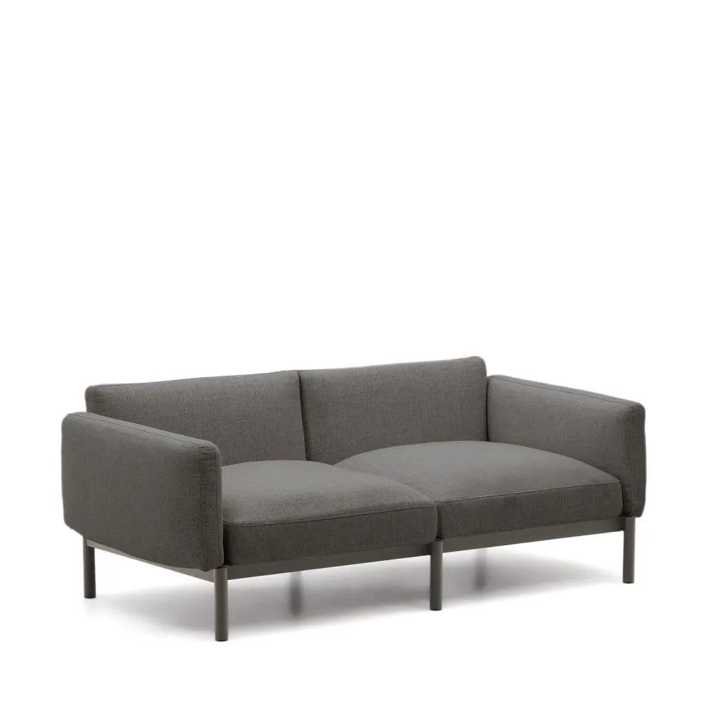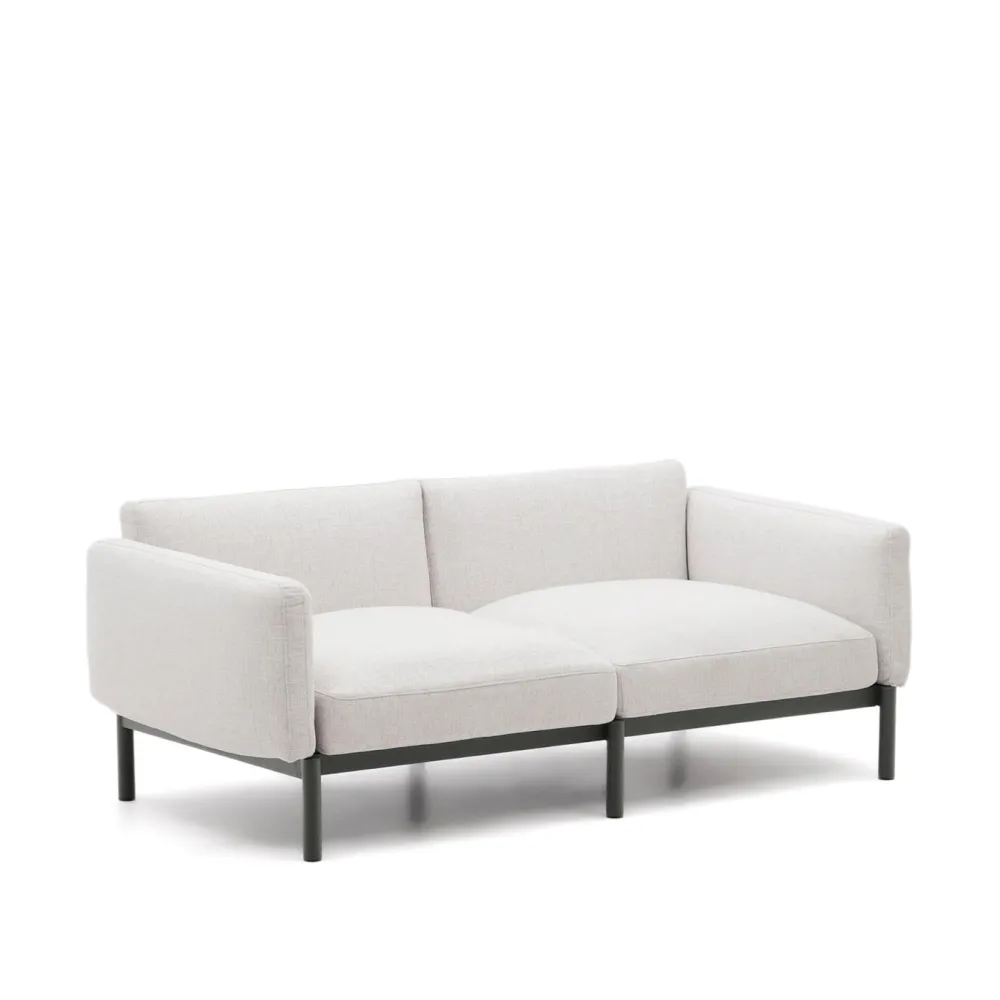- Sorells modulaire beige beklede 2-zitsbank voor buiten met aluminium structuur met afwerking in grijs.