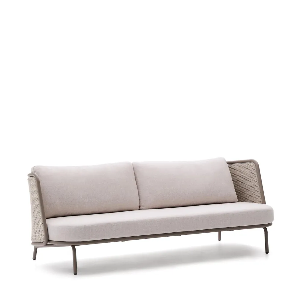- 3-zitsbank van aluminium met rugleuning en zitting van UV-bestendig handgeweven touw.