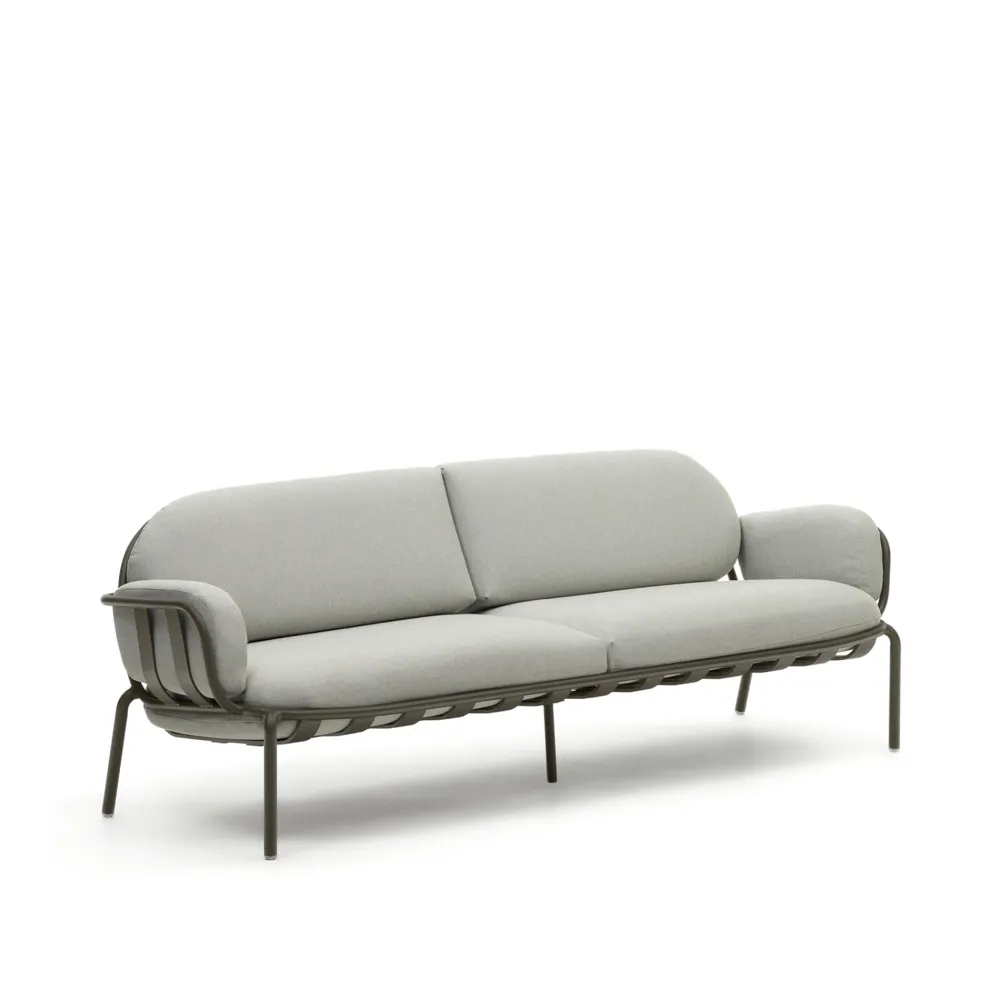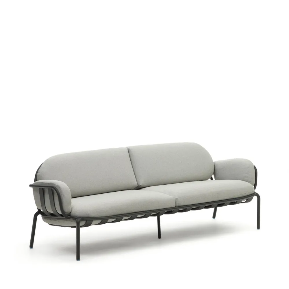 - 3-zitsbank met aluminium structuur, buisvormige en gebogen afwerking.