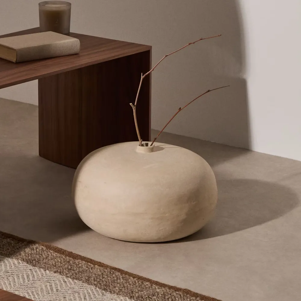 Met zijn ronde vorm en gladde afwerking combineert deze vaas van papier-maché eenvoud en elegantie. Het compacte en organische ontwerp maakt hem een veelzijdig element, perfect om warmte en natuurlijkheid toe te voegen aan elke hoek van het huis.
