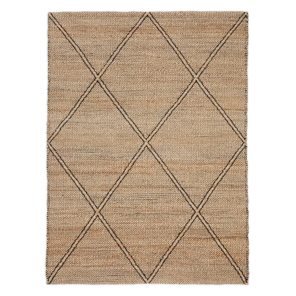 - Vloerkleed van jute met geometrisch jacquardpatroon