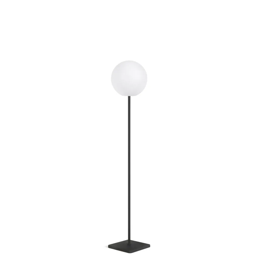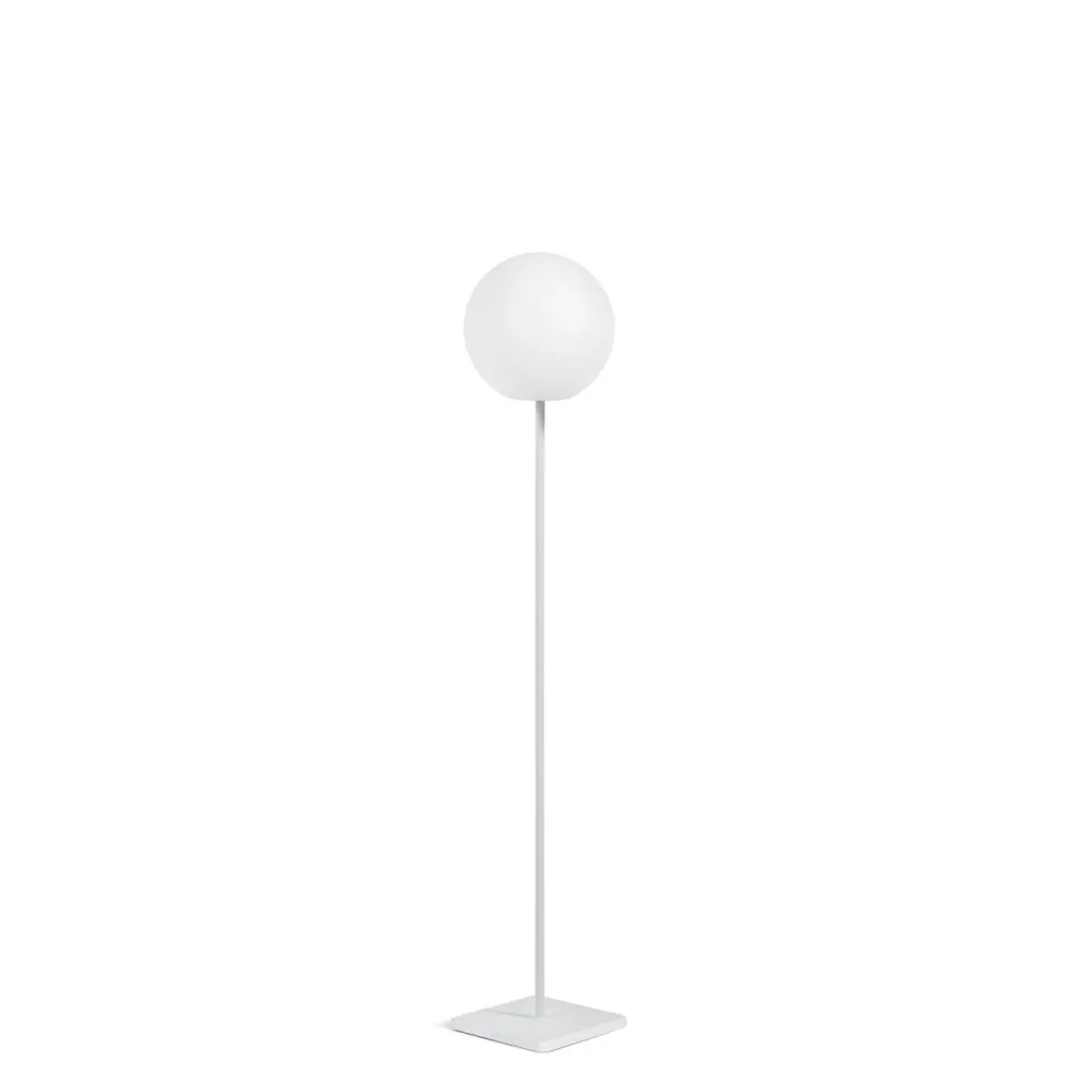 - Draagbare vloerlamp van kunststof met grijze stalen voet.