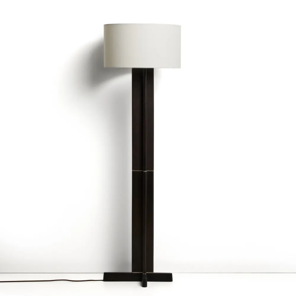 - Staande lamp van rubberhout met katoenen lampenkap.