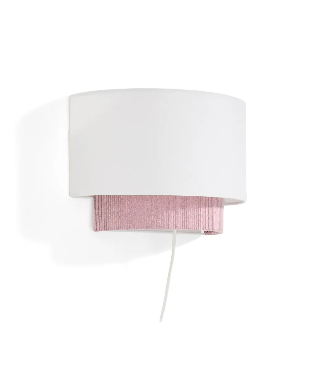 - Wandlamp met dubbele kap van wit katoen en corduroy.