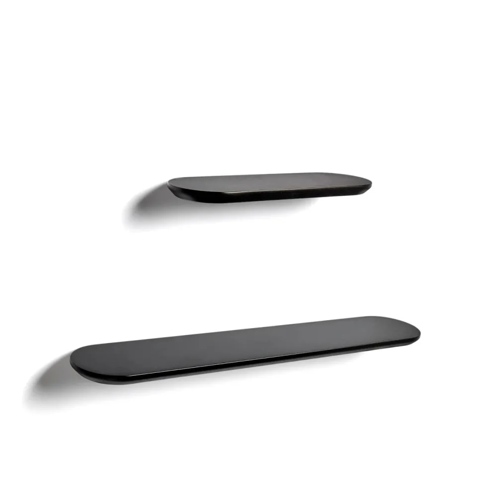 Deze Arely-collectie, door Nahtrang ontworpen voor Kave Home, combineert strakke lijnen en verzorgde afwerkingen om functionaliteit en stijl aan de ruimte toe te voegen. De planken zijn gemaakt van MDF met een gladde, gelakte afwerking. Ze bieden een slijtvast en onderhoudsvriendelijk oppervlak, perfect om spullen op een elegante manier te organiseren. Het veelzijdige ontwerp past in verschillende omgevingen, van de badkamer tot andere kamers, met behoud van een minimalistische en eigentijdse esthetiek. Bovendien zijn ze compatibel met M12 draadstang, wat de installatie vergemakkelijkt en een stevige bevestiging garandeert.