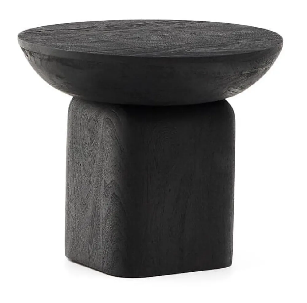 Deze massief acaciahouten bijzettafel combineert design en functionaliteit in een veelzijdig en tijdloos element. De zwarte afwerking accentueert de natuurlijke textuur van het hout, waardoor de unieke nerven en tinten naar voren komen en het een authentiek en elegant karakter krijgt. Het robuuste ontwerp van massief hout geeft het een rustieke uitstraling, in evenwicht gehouden door de lichte rondingen van de basis en het blad, die de aanwezigheid verzachten en het een verfijnd detail geven. Met FSC™ 100% Chain of Custody-certificaat, dat een verantwoord bosbeheermodel garandeert. De tafel is ontworpen om zich aan te passen aan elke ruimte en de poten zijn voorzien van vilten beschermers om beschadiging van de vloer te voorkomen en voor meer stabiliteit en bescherming bij dagelijks gebruik. Een perfecte aanvulling om warmte en verfijning te brengen in elke ruimte.