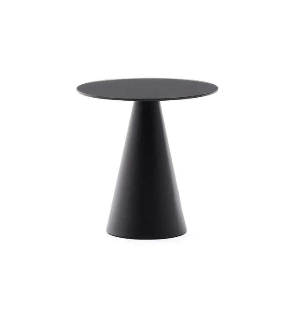 - Bijzettafel met gehard glazen blad met anti-vingerafdrukcoating en conisch stalen onderstel.