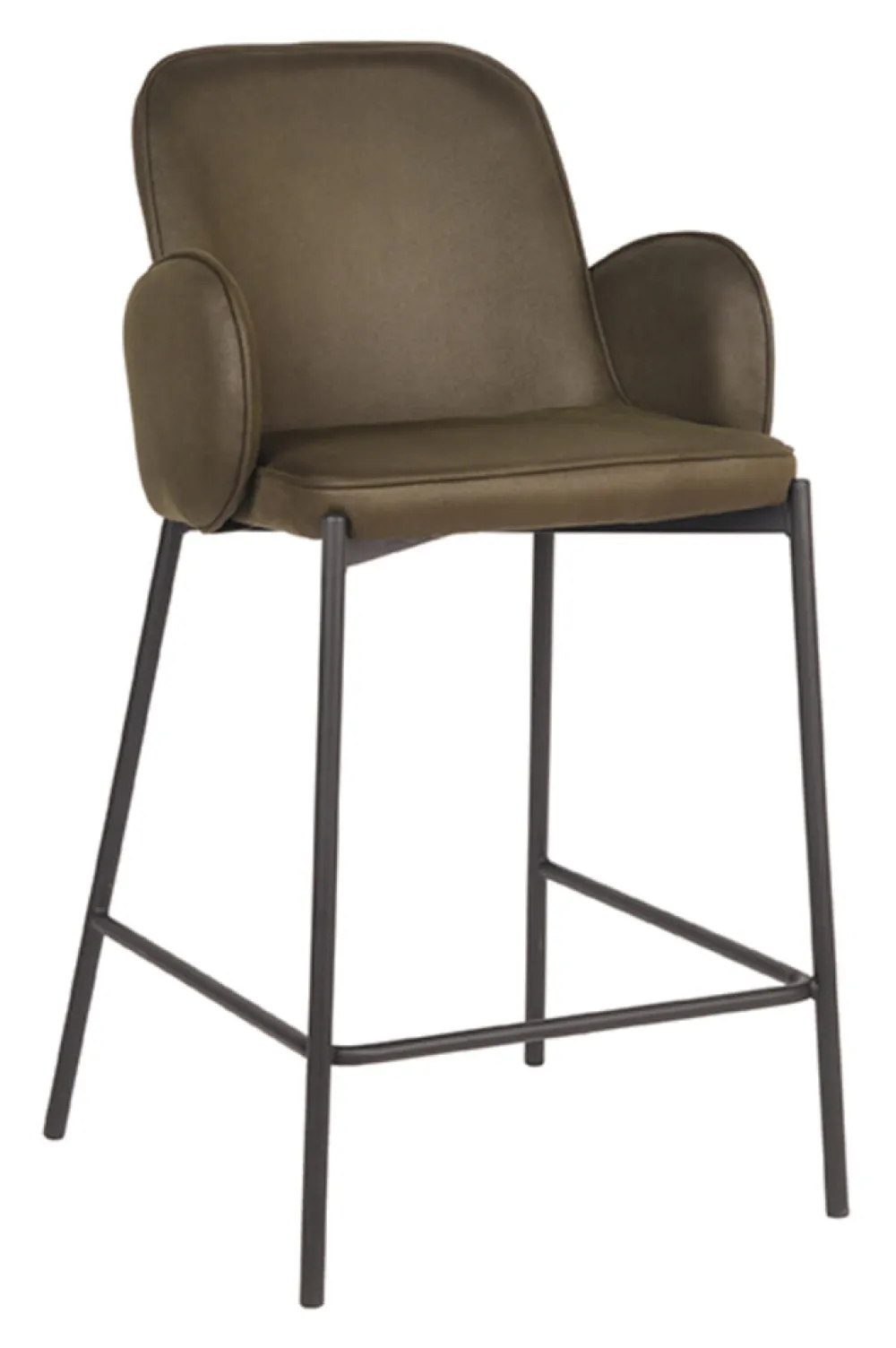 Barkruk Jari, uitgevoerd in antraciet microvezel heeft een luxe ronde zitting, rugleuning en is in het bezit van armleuningen. Deze combinatie maakt Jari een luxe barkruk met ontzettend veel comfort. De armleuningen lopen achter de rugleuning langs waardoor de barkruk een uniek uiterlijk krijgt en er ook nog eens ontzettend leuk uitziet aan de achterkant. Dat is natuurlijk een fijne bijkomstigheid als de barkrukken aangeschoven staan aan tafel of een bar. Het ranke maar doorlopende zwarte frame waar de zitting als ware op rust geeft de barkruk een luchtige uitstraling. Het U-frame zorgt voor een makkelijke op- en afstap en dient als voetensteun. De uiteinde van het frame loopt op vier zijdes een klein stukje door wat zorgt voor een speels effect.