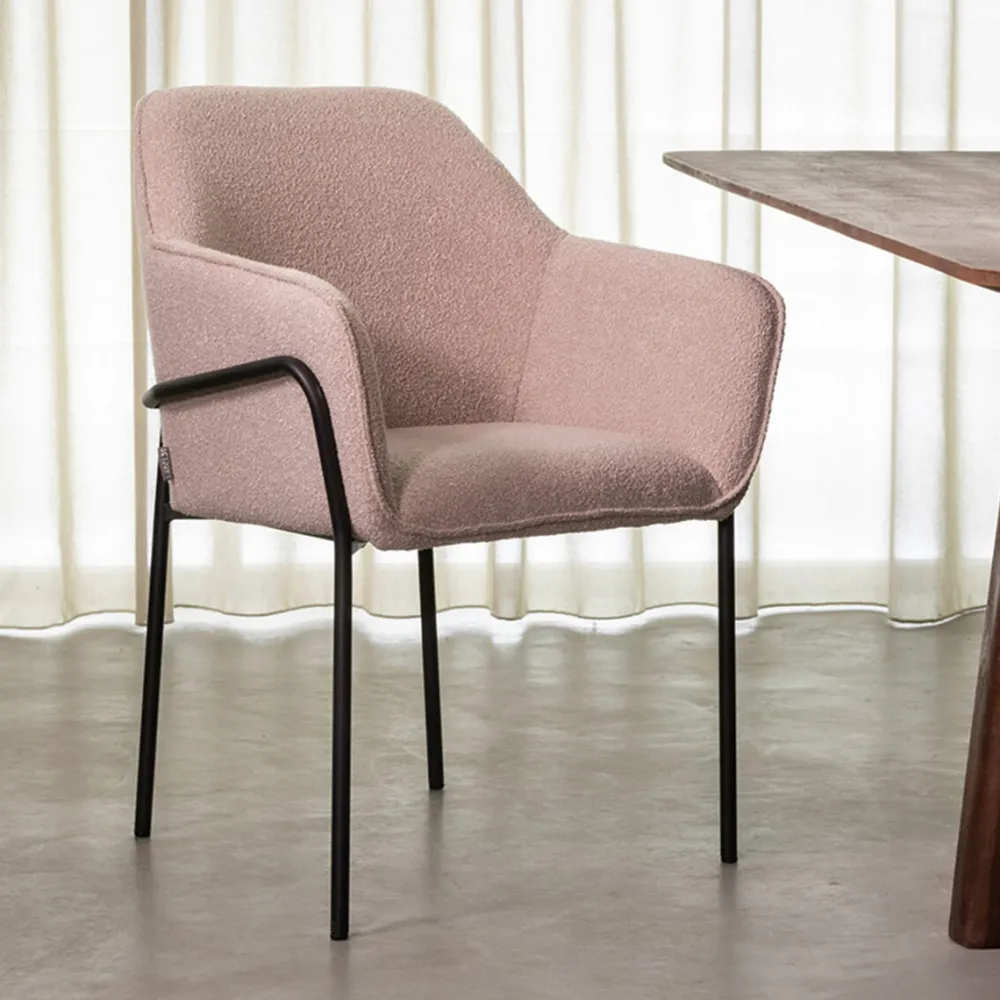 Eetkamerstoel Dexter van LABEL51 is een prachtige, zeer luxe armstoel uitgevoerd in een zachte naturel teddystof. De prachtige kuip rust in een solide maar subtiel zwart frame. Dexter is een eetkamerstoel waar je wel een hele avond in kunt toeven.
