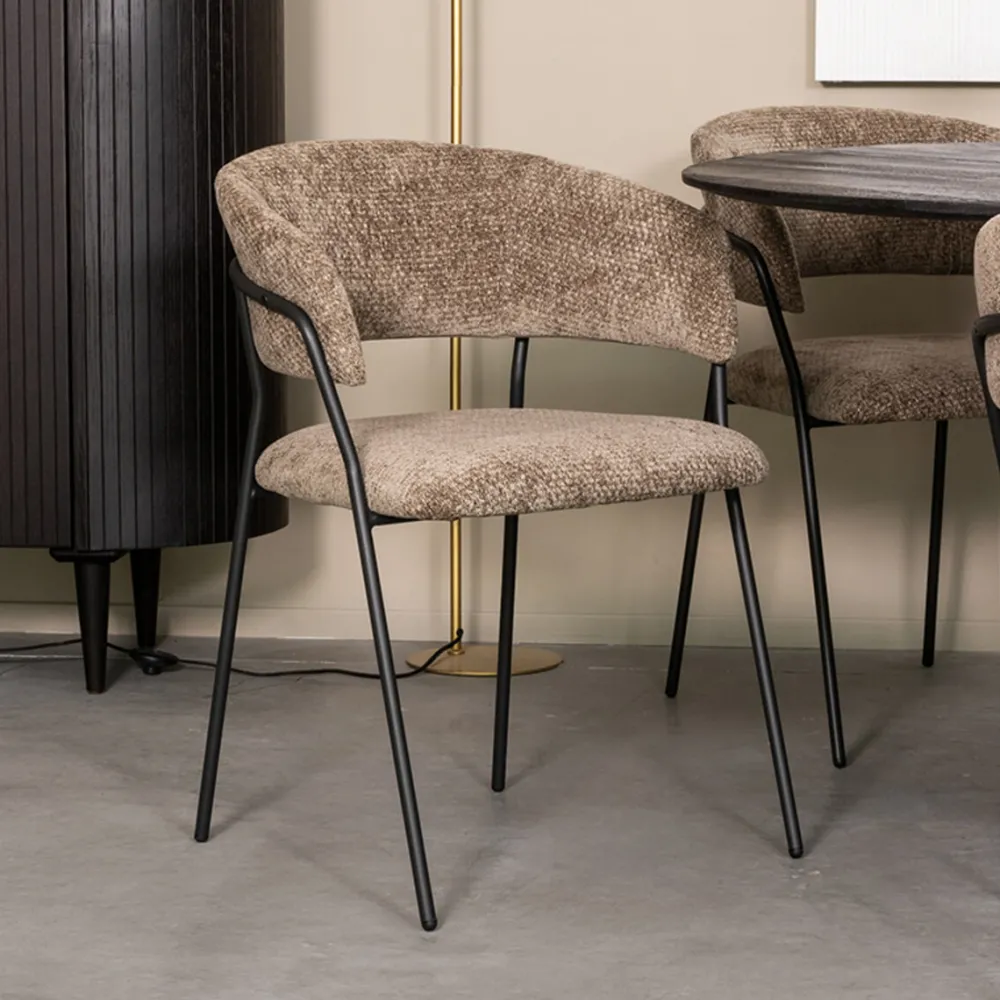 Eetkamerstoel is stevig gebouwd met een robuust metalen frame, wat zorgt voor stabiliteit en duurzaamheid. De afgeronde rugleuning ondersteunt de rug op een comfortabele manier, waardoor je urenlang kunt genieten van gezellige diners. Daarnaast is de luxe elite stof slijtvast, waardoor de stoel lang mooi blijft, zelfs bij intensief gebruik.