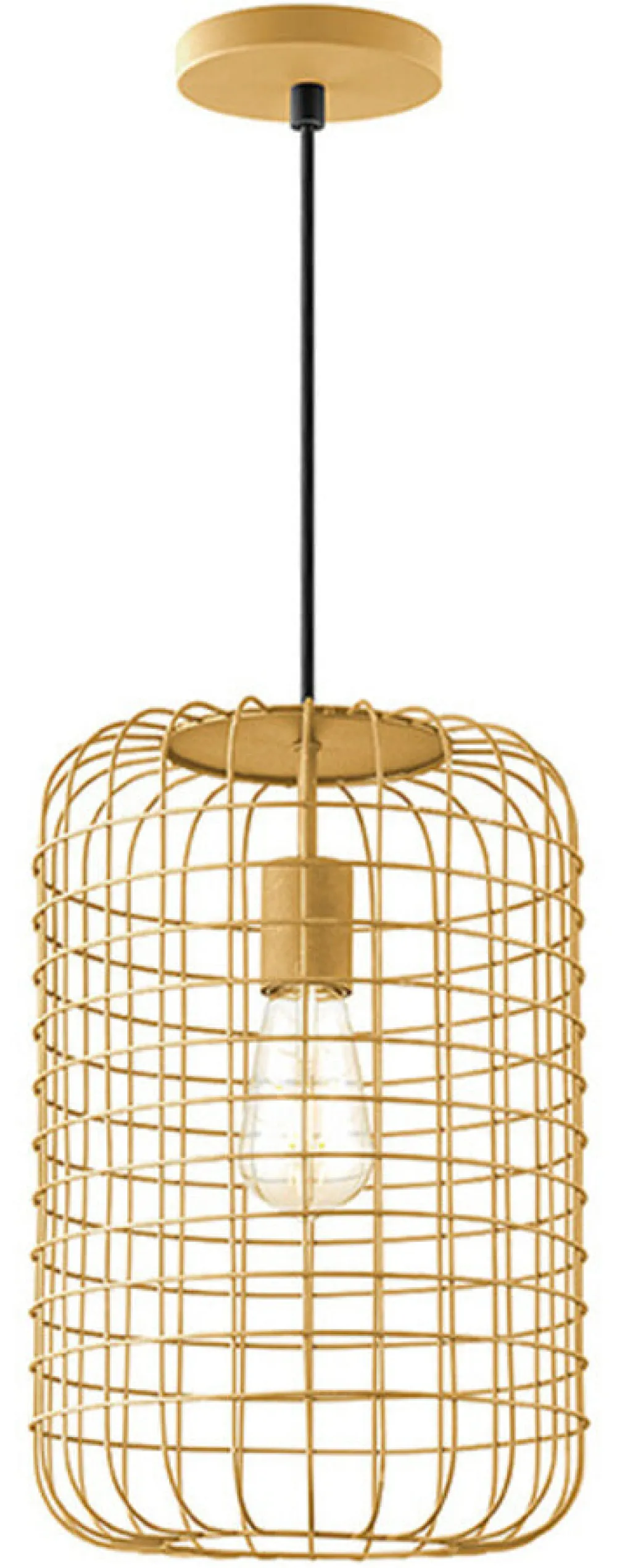 Hanglamp Solido 1-lichts heeft een grote kap bestaand uit horizontale en verticale metaaldraden uitgevoerd in goud. De mooie open structuur zorgt voor een optimale lichtspreiding en door het rastervormige frame ontstaat er een mooi lichteffect als de lamp brandt. Solido is voorzien van een zwart strijkijzerkoord.