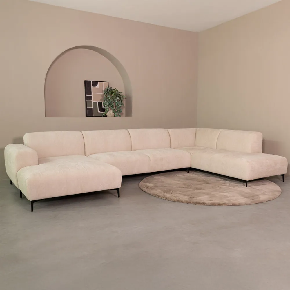 LABEL51 Hoekbank|U-bank Merido Rechts, 368cm, Raven stof, kleur Naturel