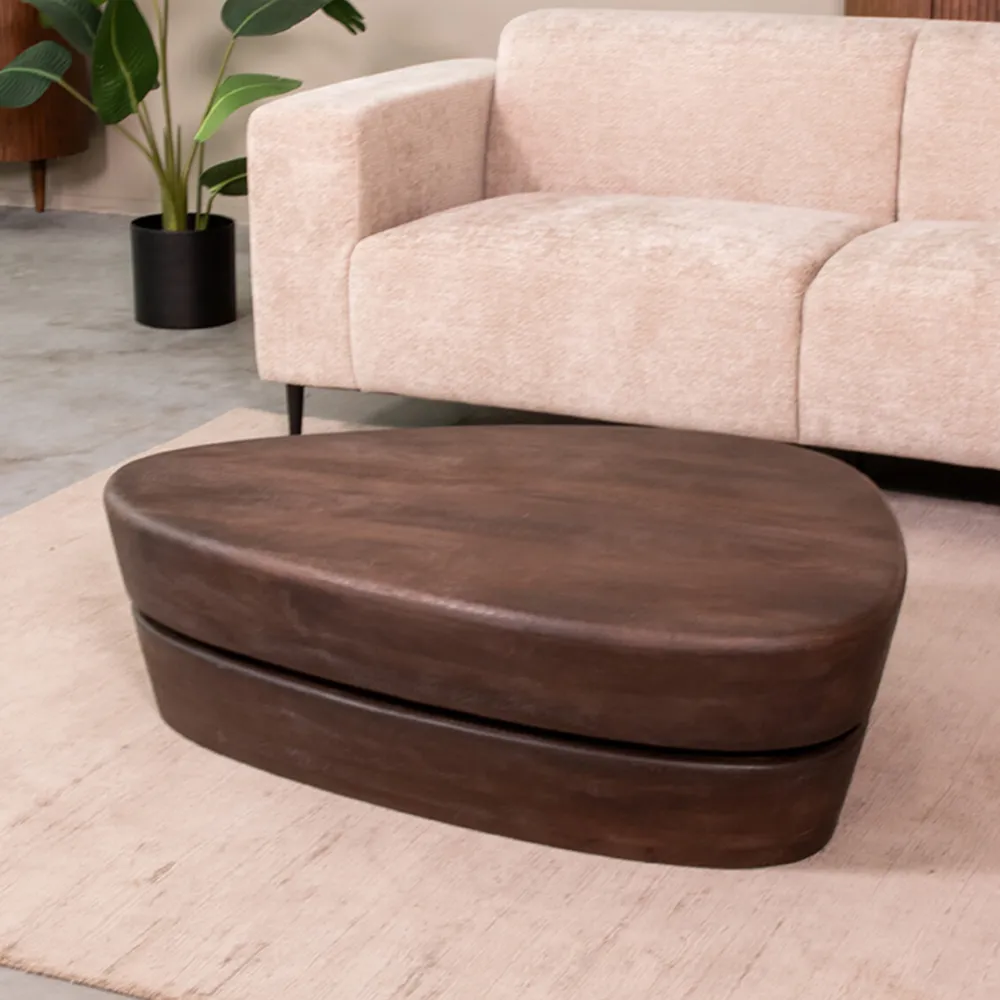 Een opvallend kenmerk van Javi is het unieke voetontwerp. Een splitsing halverwege de voet creëert de illusie van twee delen, wat een speelse draai geeft aan de salontafel. Met zijn robuuste karakter is Javi een stijlvolle toevoeging aan de zithoek. De combinatie van Espresso Mangohout en het bijzondere ontwerp maakt deze tafel een perfecte keuze voor elke woonruimte.