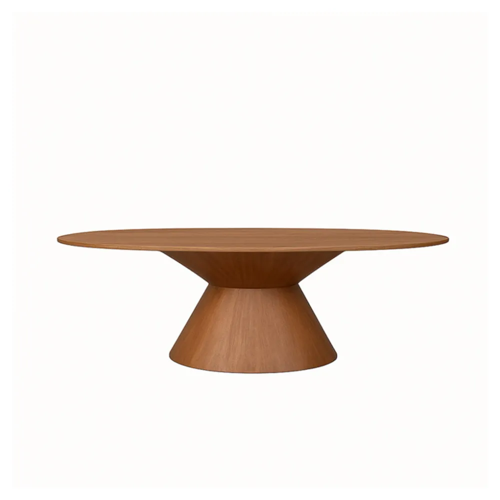 Eettafel Jagger van LABEL51 is een echte blikvanger in elke eetkamer. Deze elegante, ovale tafel is uitgevoerd in hoogwaardig nature smooth mangohout en valt op door zijn verfijnde en tijdloze ontwerp. Het opvallende, conische onderstel geeft de tafel een moderne, sculpturale uitstraling, terwijl de diepe espressokleur van het hout warmte en luxe toevoegt aan je interieur. De natuurlijke houtnerf blijft subtiel zichtbaar, wat elke tafel uniek maakt en bijdraagt aan de authentieke uitstraling.