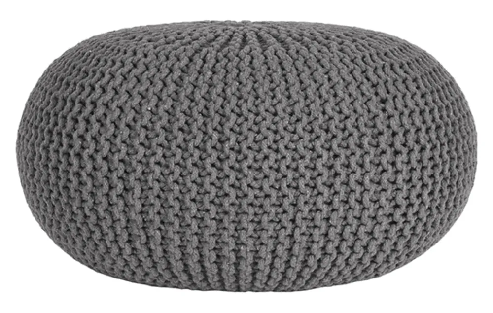 De gebreide poef, gemaakt van 100% katoen is ovaal van vorm, waarvan de doorsnede 70 cm. Hierdoor is hij ideaal te gebruiken als bijzettafel of voetenbankje.