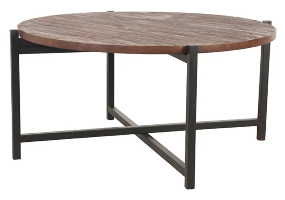 Salontafel Dox 70x70x35cm van LABEL51. Dox is een sfeervolle salontafel met een licht gezandstraald mango houten rond blad in espresso kleur. Het onderstel in met kruispoot is van chique zwart metaal. Salontafel Dox geeft je interieur een stijlvolle en warme touch en is ook eindeloos te combineren met bijvoorbeeld Dox bijzettafel of andere bijzettafels van LABEL51.