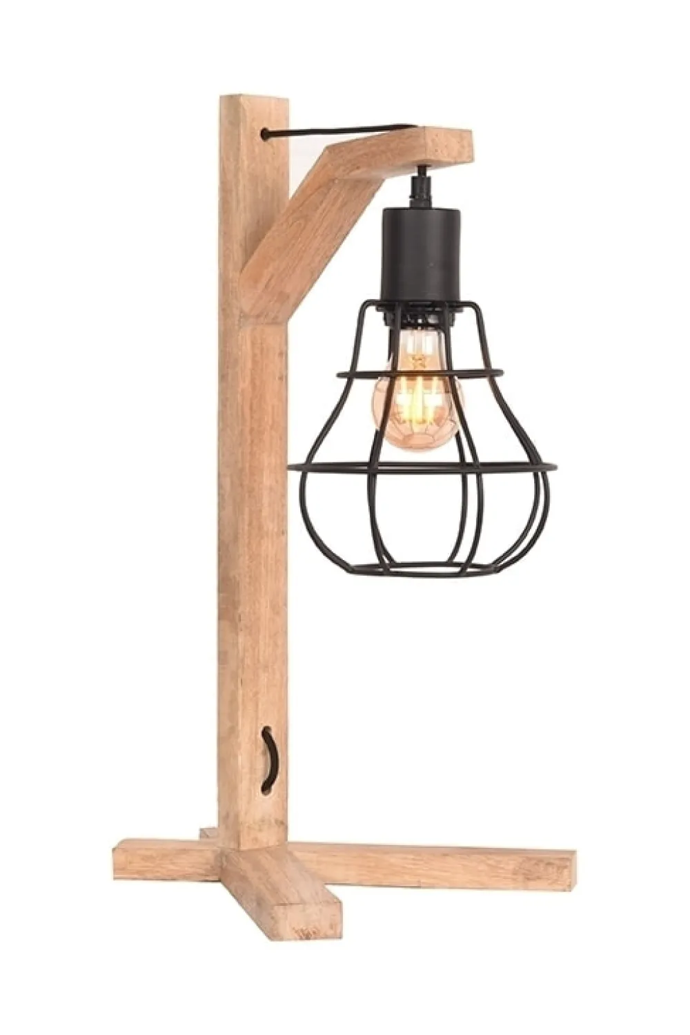 Tafellamp Drop bestaat uit een mooie stevige naturel kleurige mango houten voet. Door het hout is een gaaf strijkijzerkoord geregen waar een solide druppelvormige kap aan hangt. Deze kap is gemaakt van robuust staaldraad en vormt een open structuur. De open structuur zorgt voor een mooie schaduwwerking wanneer het licht brandt.