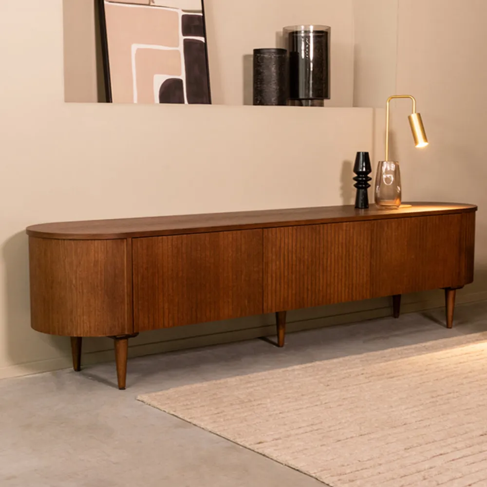 Tv-meubel Oliva van LABEL51 is een prachtig meubel uitgevoerd in eikenfineer. Een speels vormgegeven meubel waar al jouw spullen stijlvol in kunnen worden opgeborgen.