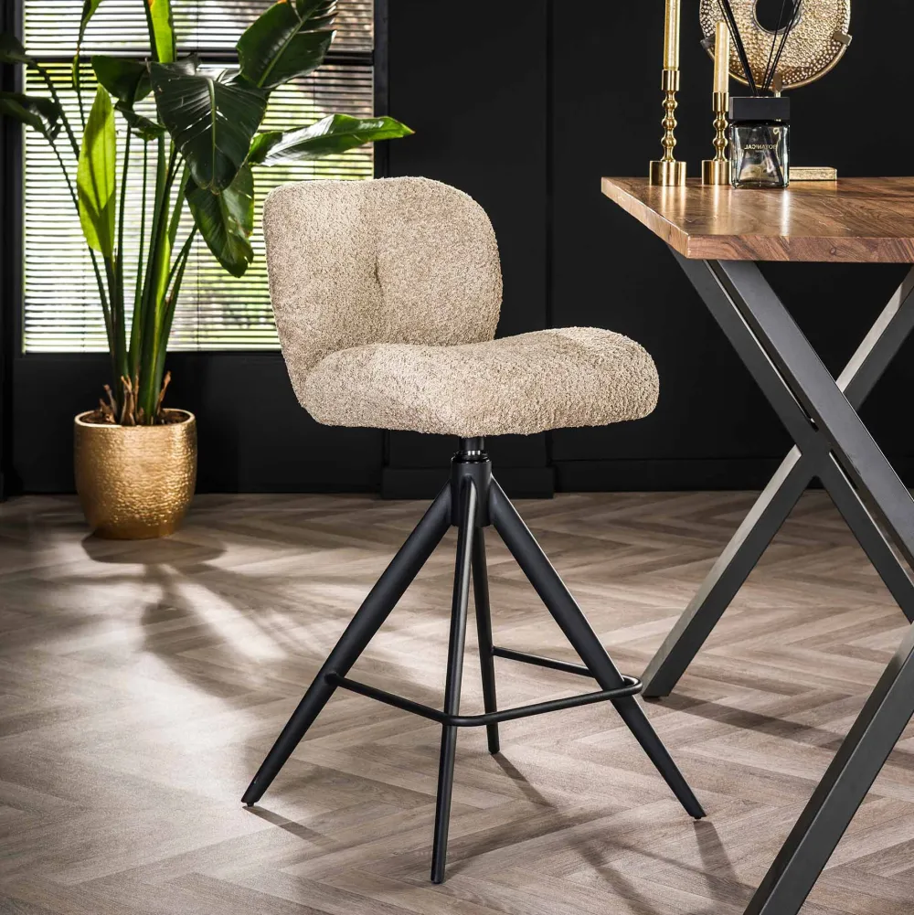 LifestyleFurn Barkruk Met Rugleuning|Draaibare Barstoel Lovie Bouclé Zand