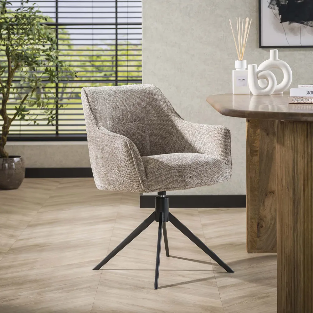 LifestyleFurn Beige Eetkamerstoelen|Draaibare Eetkamerstoelen|Draaibare Eetkamerstoel Lavonne Chenille