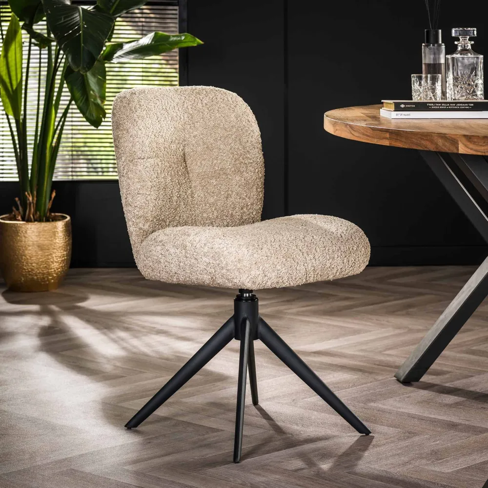 LifestyleFurn Beige Eetkamerstoelen|Eetkamerstoelen Bouclé / Teddy|Draaibare Eetkamerstoel Lovie Bouclé Zand