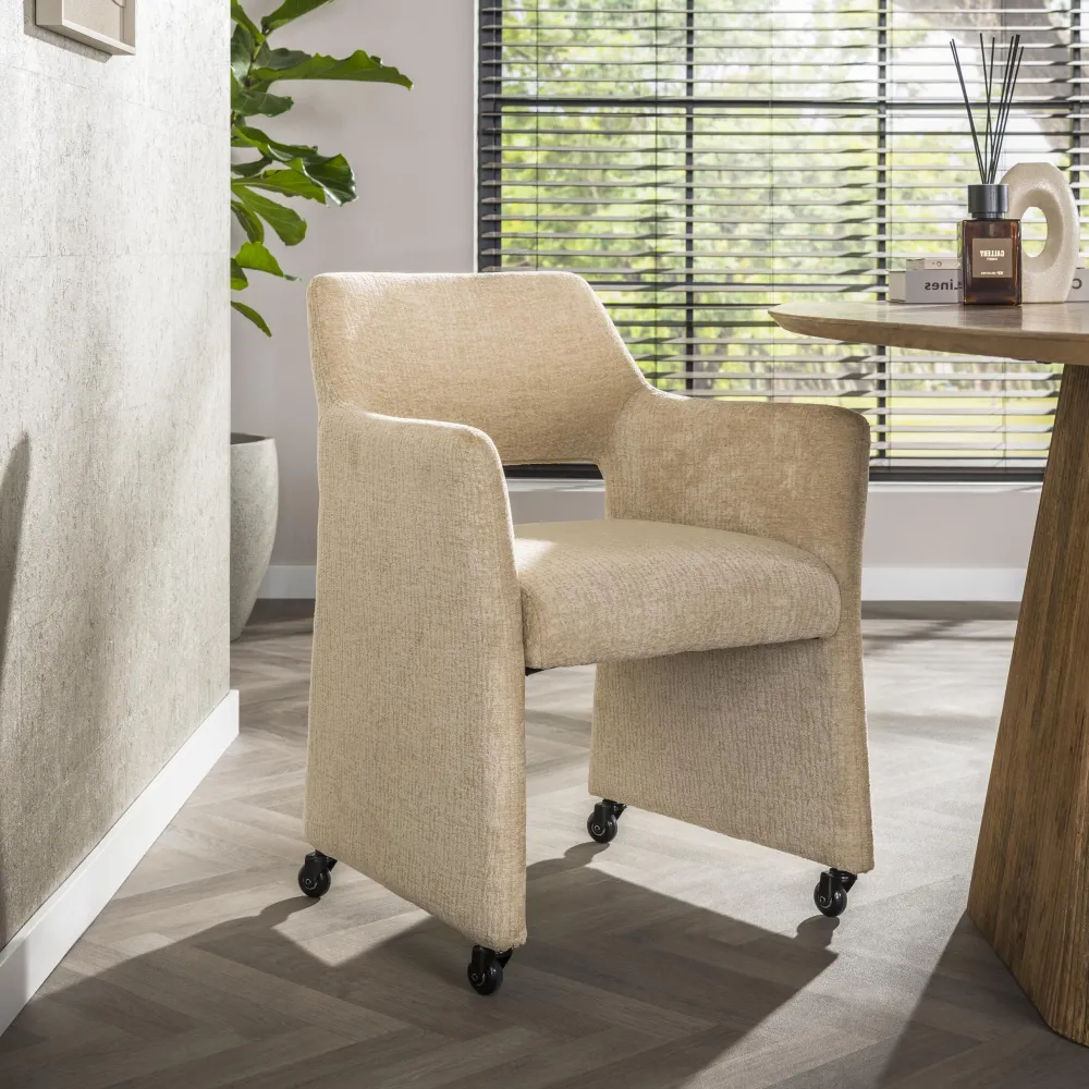 Armstoel Forma is bekleed met Jaroq stof en voorzien van een comfortabele zitting met pocketvering. Het model heeft wieltjes en een strak ontwerp met doorlopende armleuningen tot aan de vloer. De opening in de rugleuning geeft de stoel een luchtige uitstraling. Deze armstoel is onderdeel van de Forma-serie.